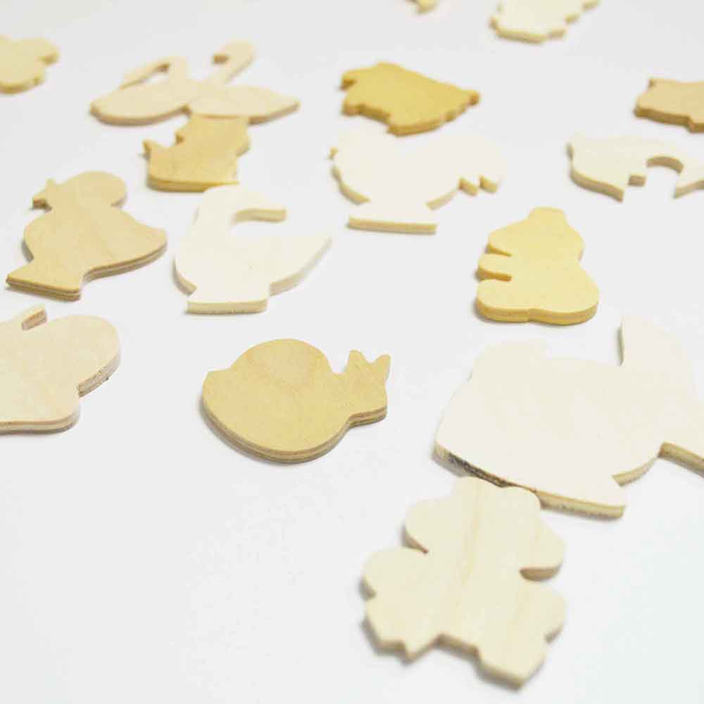 Drvene aplikacije, razni oblici mašna, srce, detelina, jelka, sneško belić, mačka, patkica, leptir, riba, delfin… Drvene aplikacije se prodaju na komad. Mogu se koristiti samostalno za kreativno ukrašavanje, bojenje običnim ili akrilnim bojama, pravljenje dečijih broševa ili magneta ili lepljenjem na neku drugu podlogu (poput drvenog rama za slike NS) kao dodatna aplikacija za ukrašavanje. Veličina pojedinačne aplikacije od 4 – 6 cm
