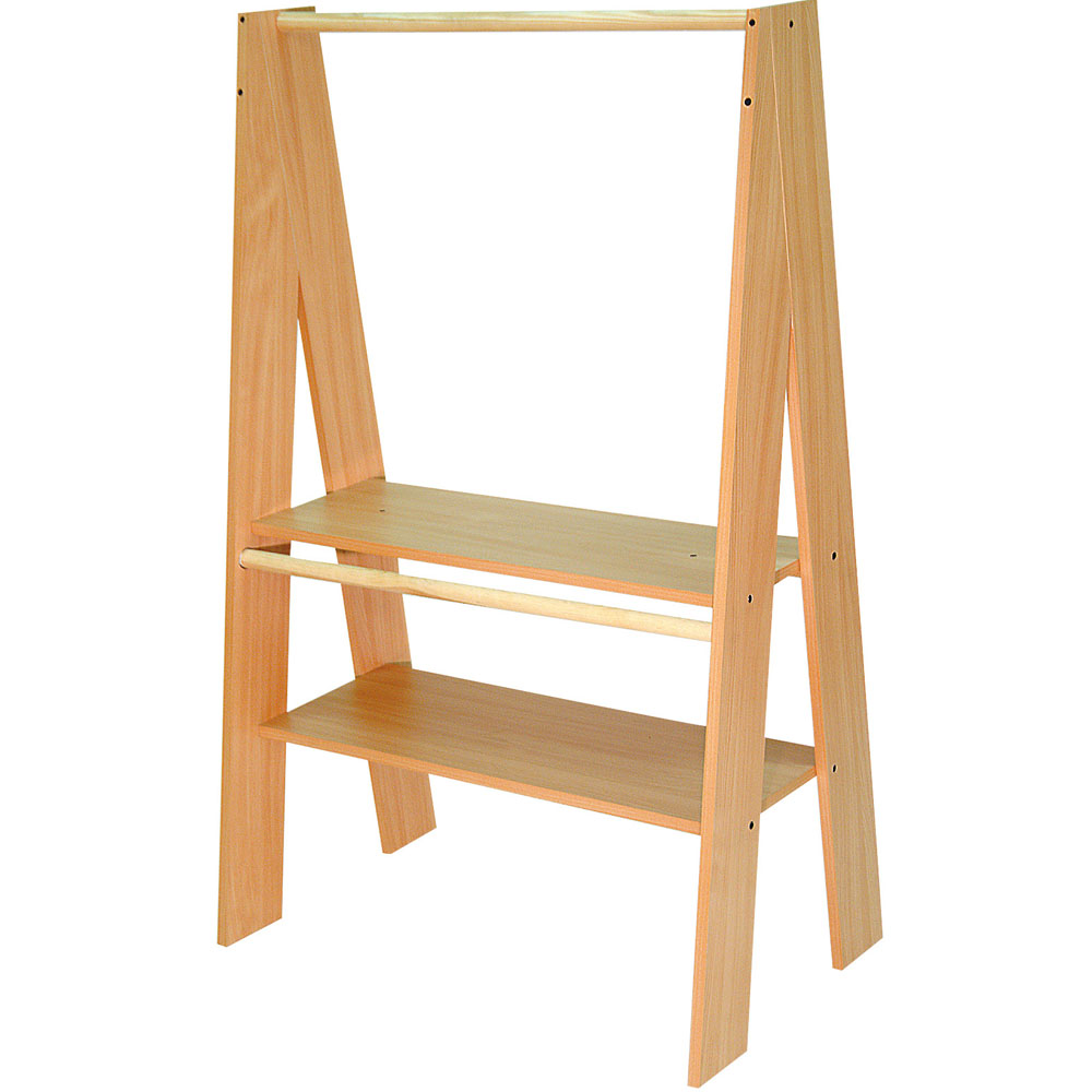 Višenamenski drveni stalak dimenzija 82 x 51 x 113,5 cm. Može da posluži samostalno kao stalak za slikarske radove za male umetnike, stalak za slikanje na staklu ili zajedno sa drugim dodacima koji se prodaju odvojeno kada se dobija pozorišna scena (Zavesa za lutkarsko pozorište NS38) ili mini štand u prodavnici (Tenda za stalak NS31).
